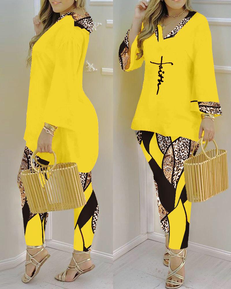 Style:Casual Type:Pants Sets Material:100%Polyester Neckline:V-Neck Sleeve Style:Long Sleeve Length:Long Pattern Type:Baroque,Leopard,Letter Decoration:Others Fit Type:Regular Occasion:Daily Package Include:1*Pants Set Fabric Elasticity:Slight Stretch Sleeve Type:Bell Sleeve Sheer:No Care Instructions:Machine wash or professional dry clean
