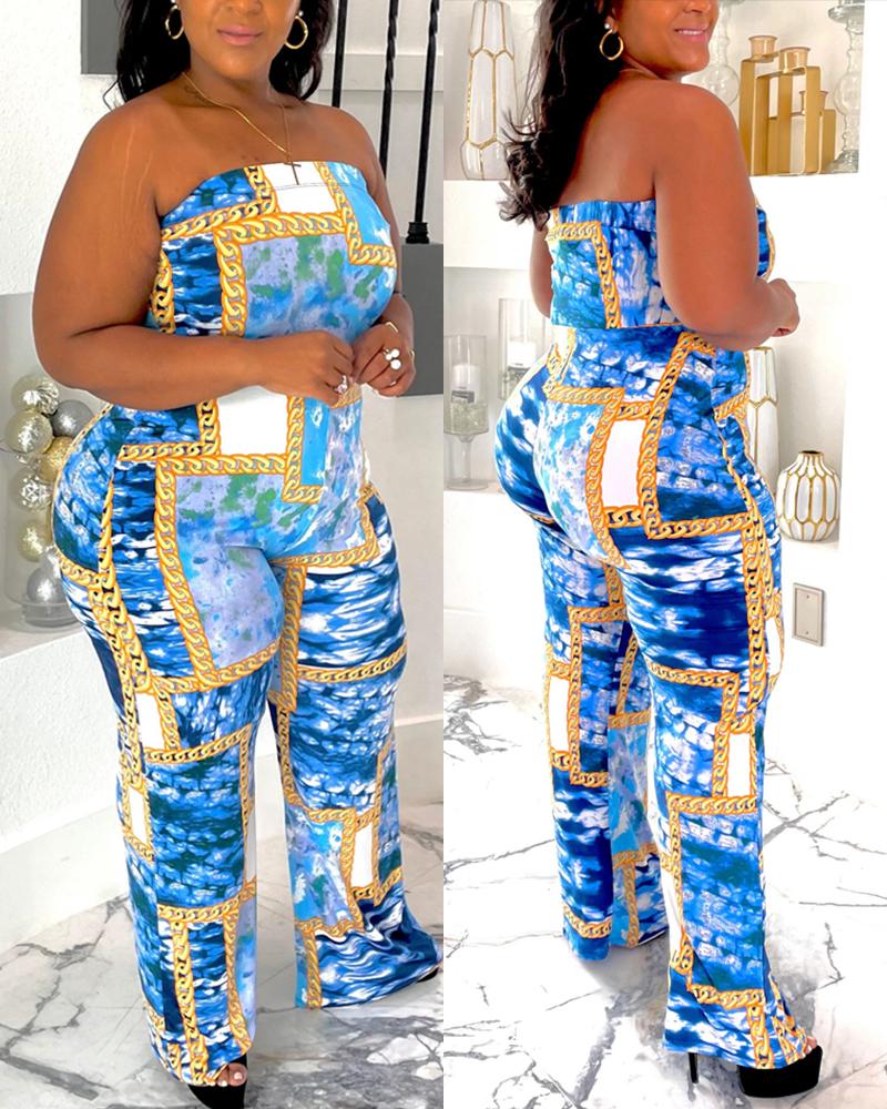 Style:Casual Type:Jumpsuit Material:97%Polyester,3%Spandex Neckline:Bandeau Sleeve Style:Sleeveless Length:Long Pattern Type:Tie Dye,Chain Decoration:Others Fit Type:Regular Occasion:Daily Package Include:1*Jumpsuit Fabric Elasticity:Non-Stretch Sheer:No Care Instructions:Machine wash or professional dry clean