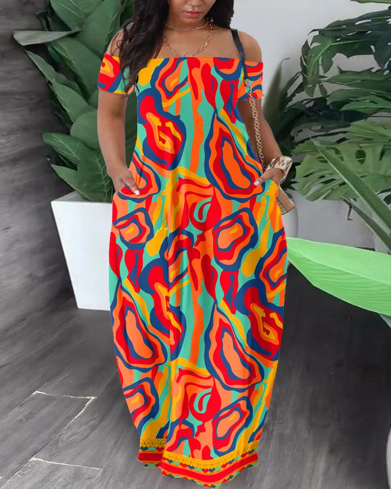 Style:Chic Type:Straight Material:97%Polyester,3%Spandex Neckline:Off the Shoulder Sleeve Style:Short Sleeve Length:Maxi Pattern Type:Abstract Decoration:Pocket Fit Type:Regular Occasion:Daily,Vacation Package Include:1* Dress Fabric Elasticity:Non-Stretch Sheer:No Care Instructions:Machine wash or professional dry clean