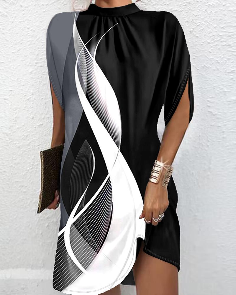 Style:Casual,Chic Type:Straight Material:97%Polyester,3%Spandex Neckline:Mock Neck Sleeve Style:Short Sleeve Length:Mini Pattern Type:Abstract,Colorblock Decoration:Others Fit Type:Regular Occasion:Daily Package Include:1* Dress Fabric Elasticity:Non-Stretch Sheer:No Care Instructions:Machine wash or professional dry clean Waist Line:Natural