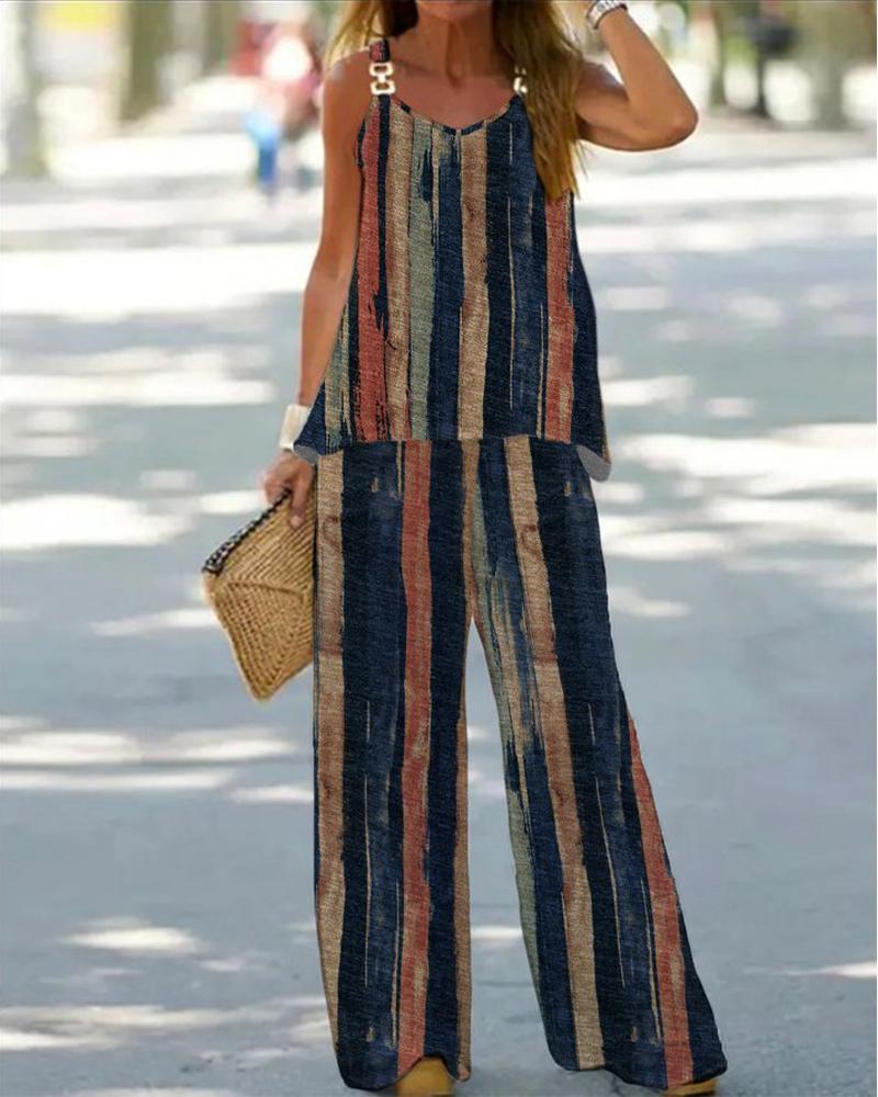 Striped Chain Strap Tank & Wide Leg Pants Set