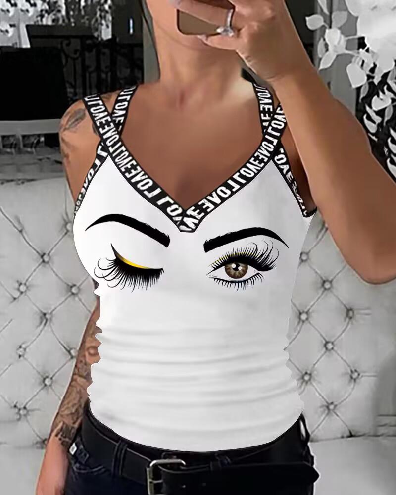 Style:Casual Type:Tank Material:97%Polyester,3%Spandex Neckline:V-Neck Sleeve Style:Sleeveless Length:Regular Pattern Type:Figure,Letter Decoration:Others Fit Type:Skinny Occasion:Daily Package Include:1*Top Fabric Elasticity:Slight Stretch Sheer:No Care Instructions:Machine wash or professional dry clean