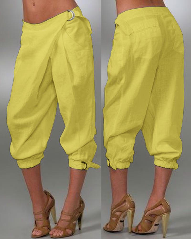 Style:Casual Type:Cuffed Material:100%Polyester Length:Capris Pattern Type:Plain Decoration:Buckle,Pocket Fit Type:Regular Occasion:Daily Package Include:1*Pants Fabric Elasticity:Slight Stretch Sheer:No Care Instructions:Machine wash or professional dry clean