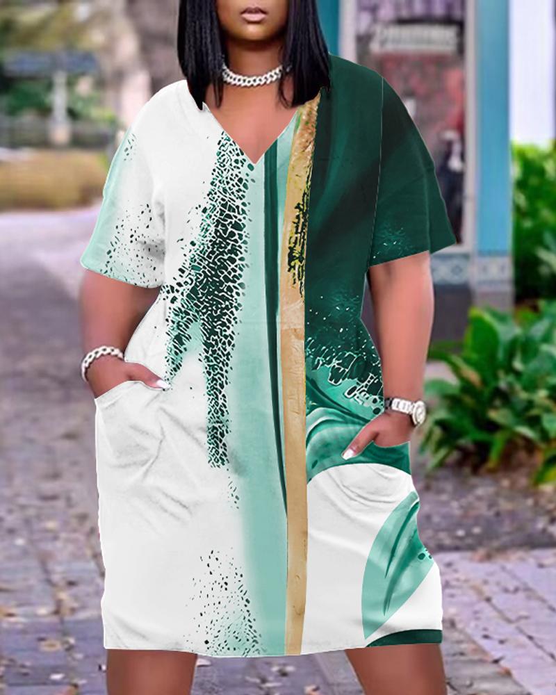 Style:Basics,Casual Type:Straight Material:97%Polyester,3%Spandex Neckline:V-Neck Sleeve Style:Short Sleeve Length:Knee-Length Pattern Type:Tie Dye Decoration:Pocket Fit Type:Regular Occasion:Daily Package Include:1* Dress Fabric Elasticity:Slight Stretch Sheer:No Care Instructions:Machine wash or professional dry clean Waist Line:Natural
