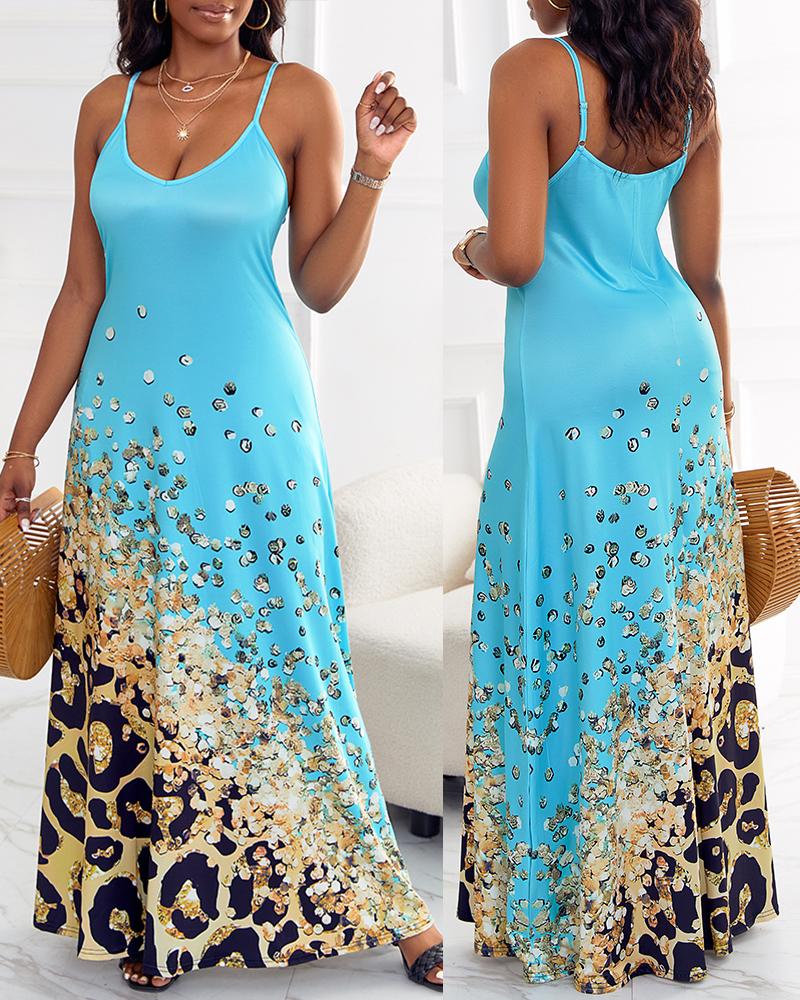 Style:Casual Type:Cami,Flared Material:97%Polyester,3%Spandex Neckline:V-Neck Sleeve Style:Spaghetti Strap Length:Maxi Pattern Type:Leopard Decoration:Others Fit Type:Regular Occasion:Daily,Vacation Package Include:1* Dress Fabric Elasticity:Non-Stretch Sheer:No Care Instructions:Machine wash or professional dry clean Waist Line:Natural