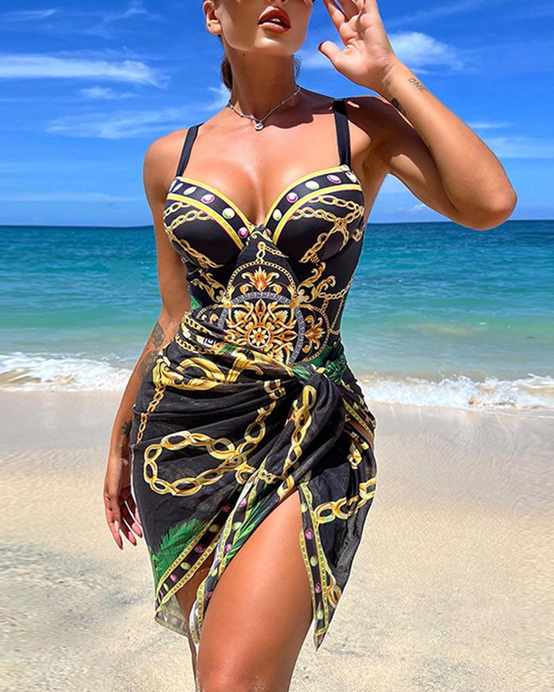 Baroque Chain Print One Piece Swimsuit With Cover Up