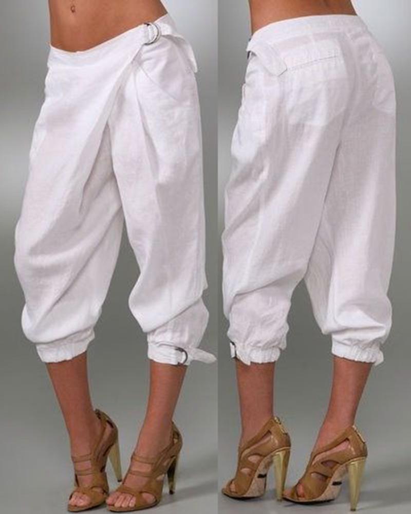 Style:Casual Type:Cuffed Material:100%Polyester Length:Capris Pattern Type:Plain Decoration:Buckle,Pocket Fit Type:Regular Occasion:Daily Package Include:1*Pants Fabric Elasticity:Slight Stretch Sheer:No Care Instructions:Machine wash or professional dry clean