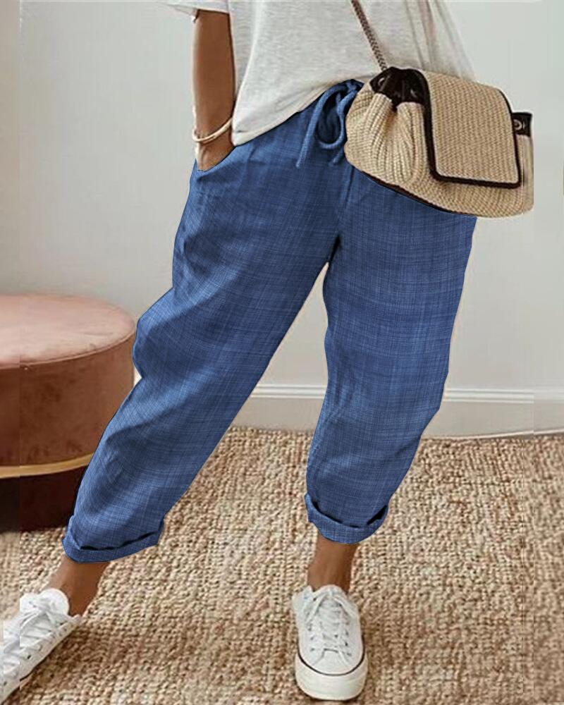 Style:Casual Type:High Waist Material:100%Polyester Length:Long Pattern Type:Plain Decoration:Drawstring,Pocket,Washed Fit Type:Regular Occasion:Daily Package Include:1*Pants Fabric Elasticity:Non-Stretch Sheer:No Care Instructions:Machine wash or professional dry clean