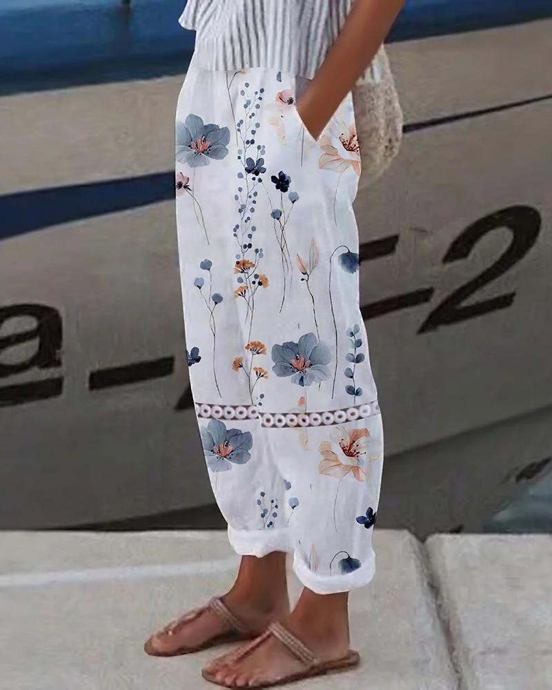 Style:Casual Type:Pants Material:100%Polyester Length:Long Pattern Type:Floral Decoration:Hollow-out,Pocket Fit Type:Regular Occasion:Daily,Vacation Package Include:1*Pants Fabric Elasticity:Non-Stretch Sheer:No Care Instructions:Machine wash or professional dry clean