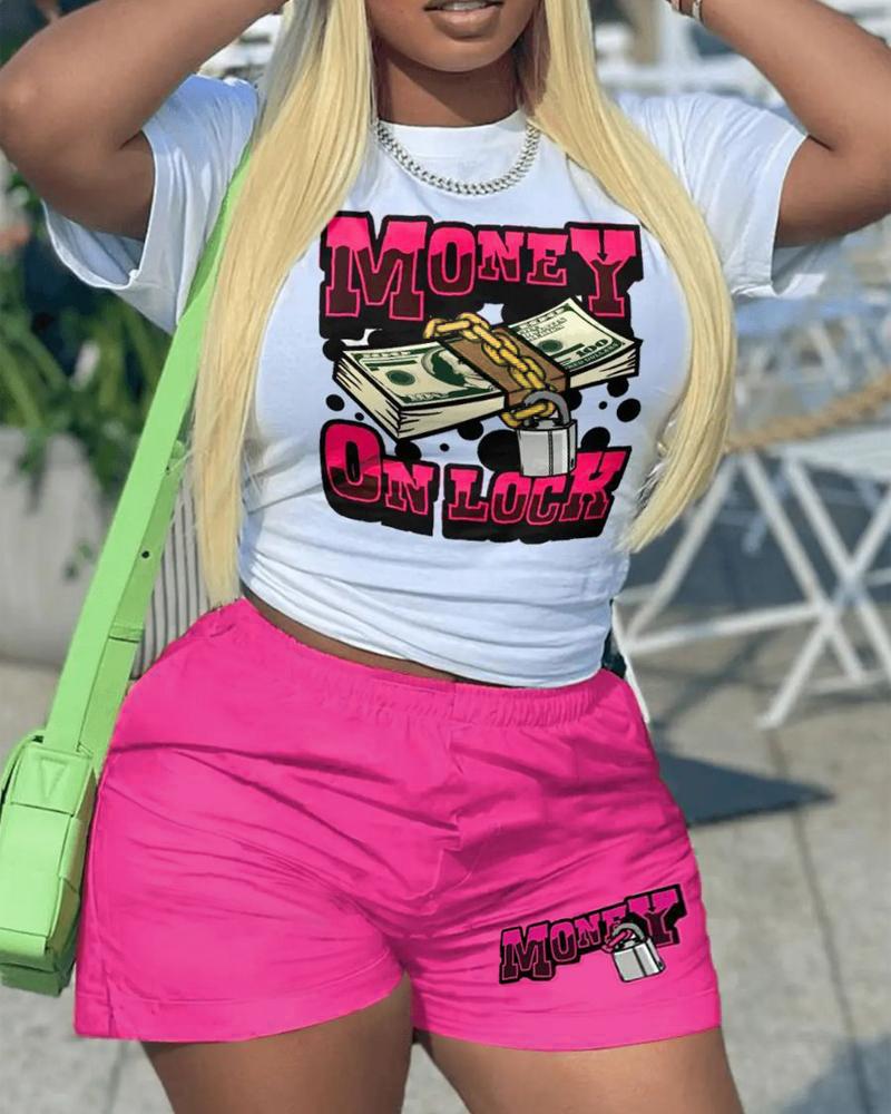 Graphic Print Short Sleeve Top & Shorts Set