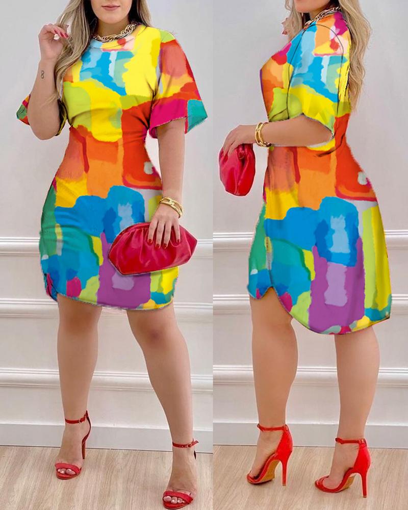Melting Colors All Over Print Half Sleeve Dress