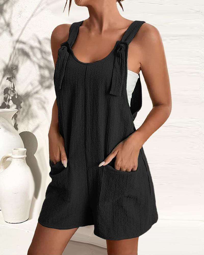 Style:Chic Type:Romper Material:100%Polyester Neckline:Scoop Neck Sleeve Style:Sleeveless Length:Above Knee Pattern Type:Plain Decoration:Pocket Fit Type:Regular Occasion:Daily Package Include:1*Romper Fabric Elasticity:Slight Stretch Sheer:No Care Instructions:Machine wash or professional dry clean