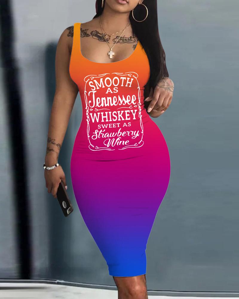 Smooth As Tennessee Whiskey Sweet As Strawberry Wine Print Ombre Sleeveless Bodycon Dress