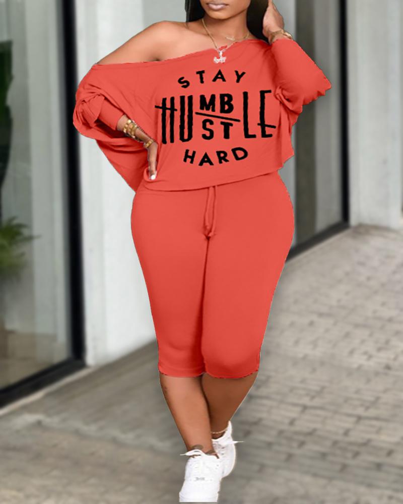 Plus Size Stay Humble Hustle Hard Print Top & Drawstring Pants Set