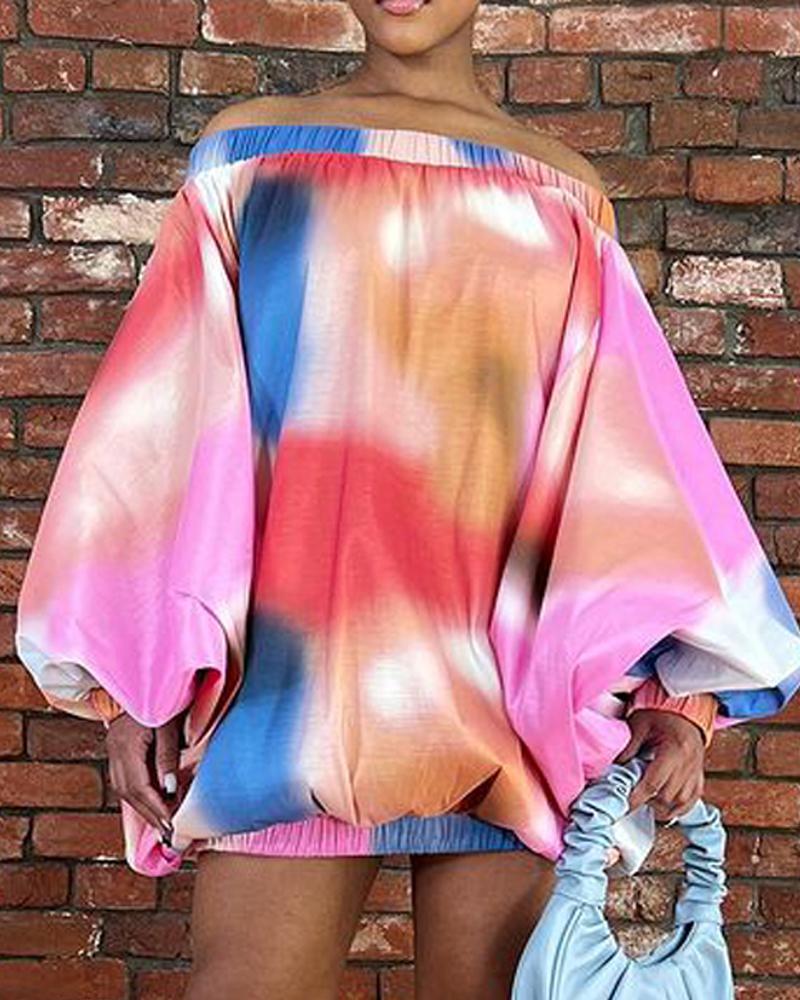 Style:Casual Type:Straight Material:100%Polyester Neckline:Off the Shoulder Sleeve Style:Lantern Sleeve,Long Sleeve Length:Mini Pattern Type:Tie Dye Decoration:Others Fit Type:Regular Occasion:Daily Package Include:1* Dress Fabric Elasticity:Non-Stretch Sheer:No Care Instructions:Machine wash or professional dry clean