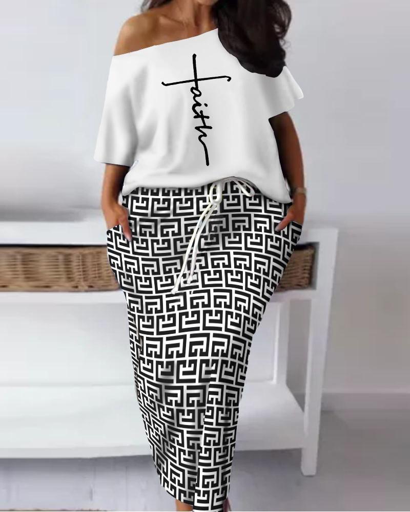 Plus Size Faith Geometric Print Casual Top & Skirt Set