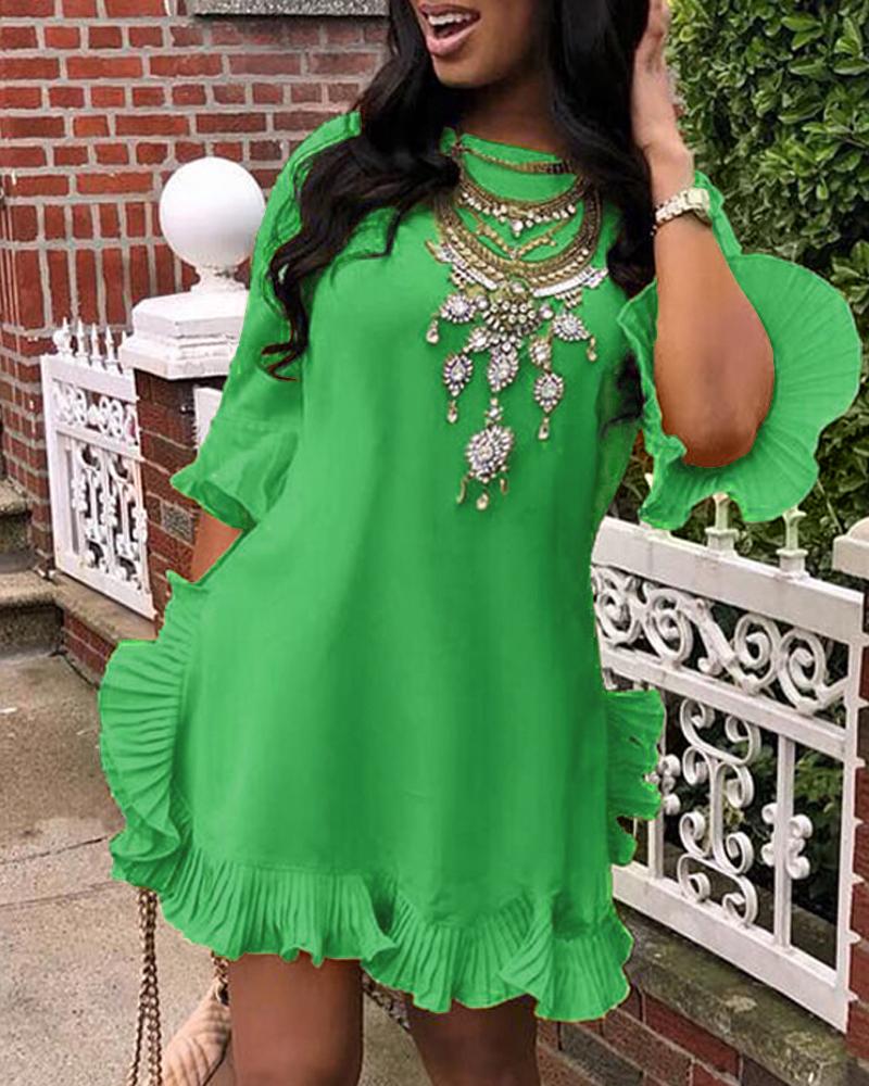 Scoop Neck Layered Ruffles Dress