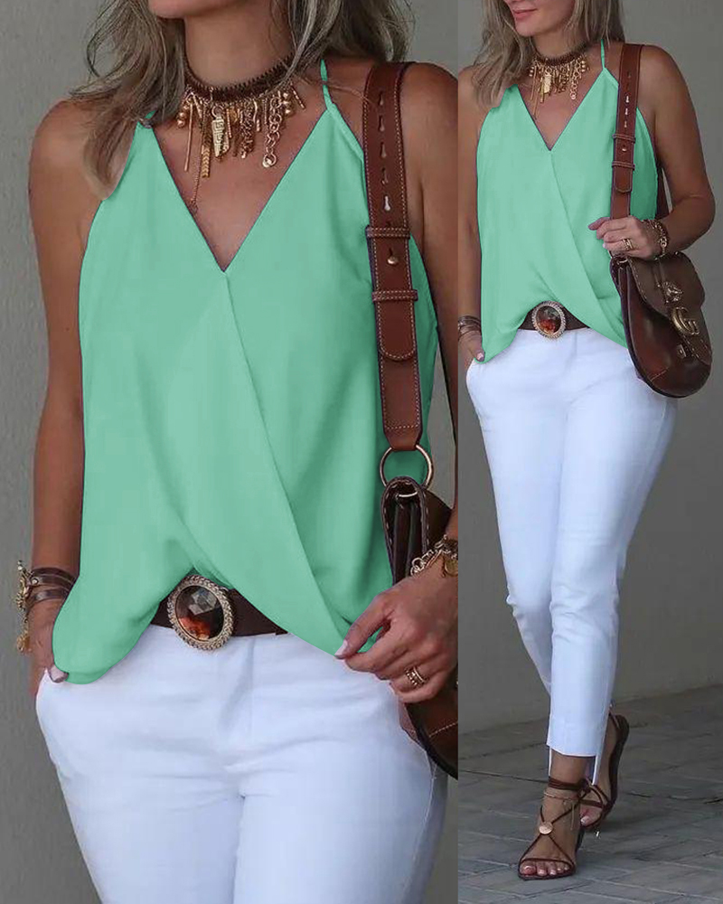 Style:Chic Type:Tank Material:100%Polyester Neckline:Halter Sleeve Style:Sleeveless Length:Regular Pattern Type:Plain Decoration:Others Fit Type:Regular Occasion:Daily Package Include:1*Top Fabric Elasticity:Slight Stretch Sheer:No Care Instructions:Machine wash or professional dry clean