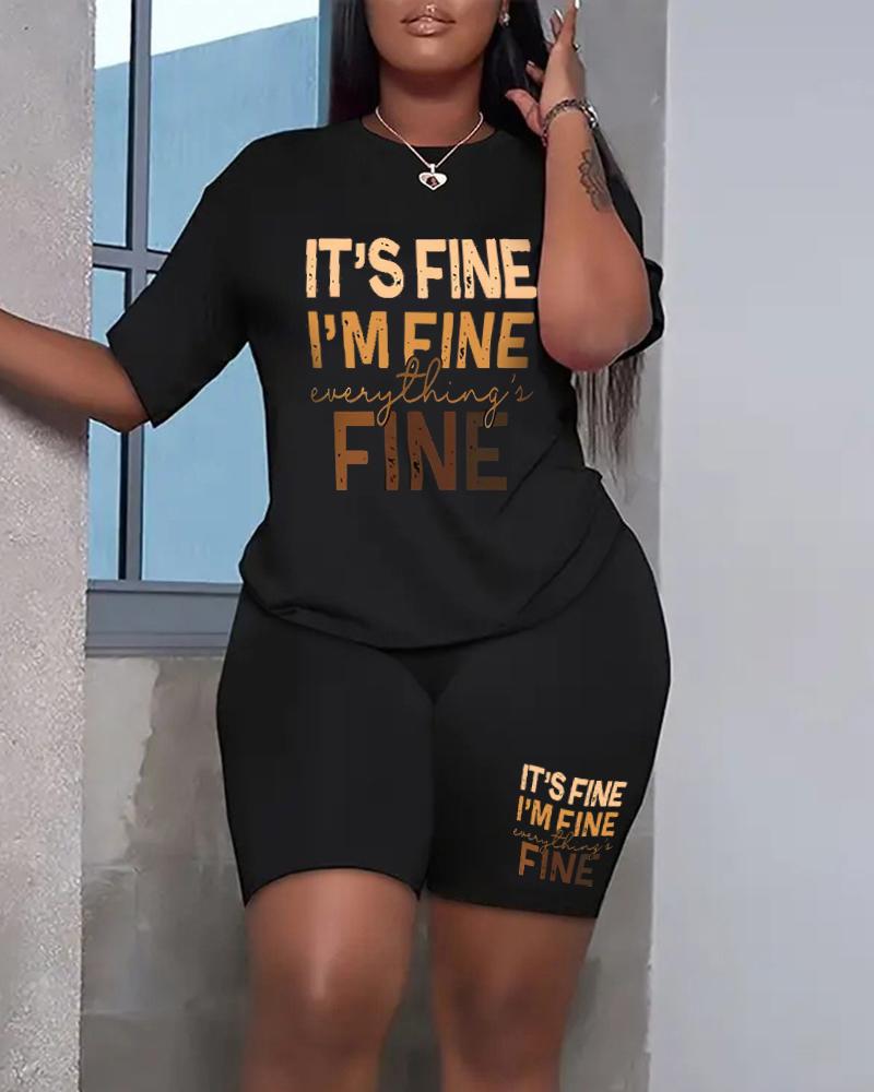 It's Fine I'm Fine Everything's Fine Print Casual Top & Shorts Set