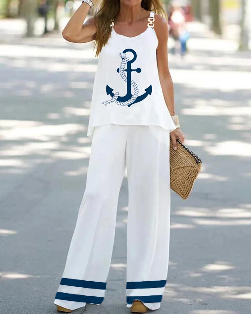 Style:Casual Type:Pants Sets Material:100%Polyester Neckline:Round Neck Sleeve Style:Sleeveless Length:Long Pattern Type:Anchor,Contrast Paneled Decoration:Others Fit Type:Regular Occasion:Daily,Vacation Package Include:Pants Sets Fabric Elasticity:Slight Stretch Sheer:No Care Instructions:Machine wash or professional dry clean