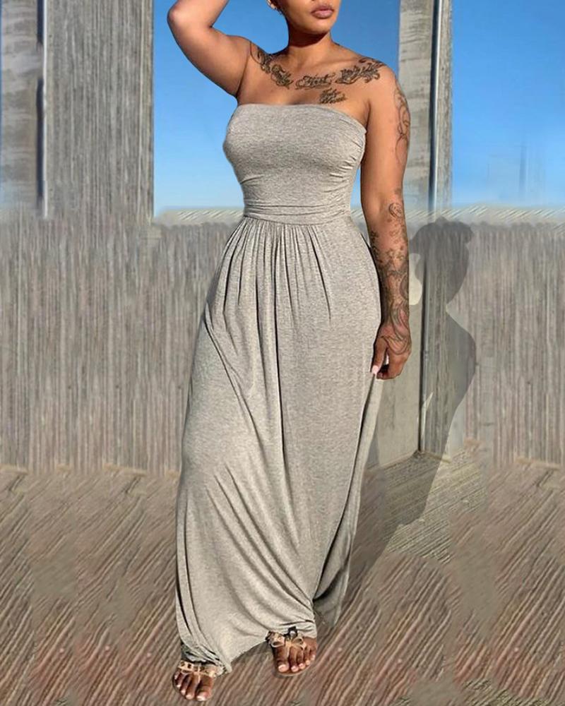Style:Casual Type:Straight Material:97%Polyester,3%Spandex Neckline:Bandeau Sleeve Style:Sleeveless Length:Maxi Pattern Type:Plain Decoration:Ruched Fit Type:Regular Occasion:Daily Package Include:1* Dress Fabric Elasticity:Slight Stretch Sheer:No Care Instructions:Machine wash or professional dry clean