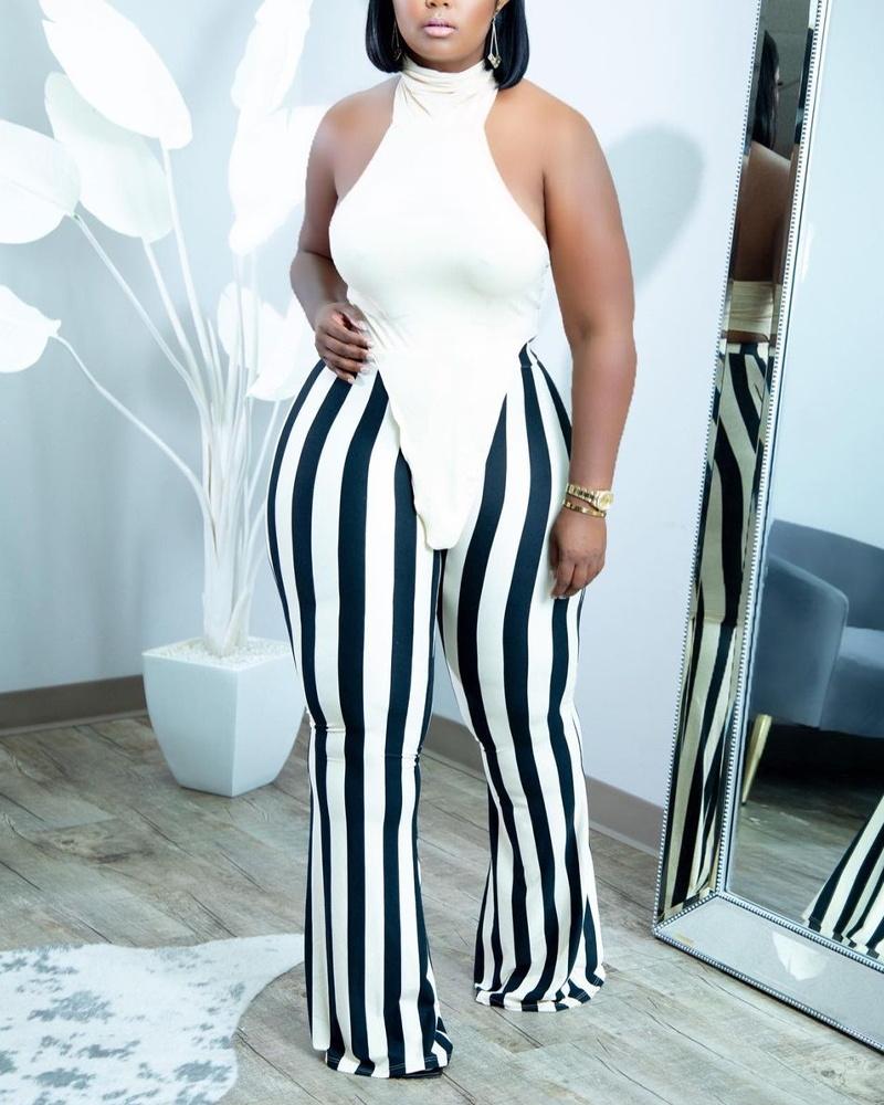 Style:Casual Type:Pants Sets Material:97%Polyester,3%Spandex Neckline:Halter Sleeve Style:Sleeveless Length:Long Pattern Type:Striped Fit Type:Regular Occasion:Daily Package Include:1*Pants Set