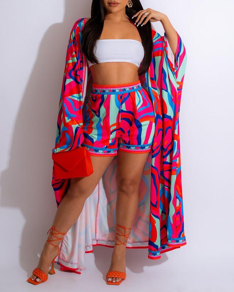 Style:Casual Type:Shorts Set Material:100%Polyester Neckline:Open Front Sleeve Style:Long Sleeve Length:Above Knee Pattern Type:Abstract Fit Type:Regular Occasion:Daily,Vacation Package Include:1*Shorts Set (Without Tube Top)