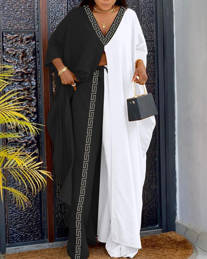 Style:Casual Type:Pants Sets Material:100%Polyester Neckline:V-Neck Sleeve Style:Long Sleeve Length:Long Pattern Type:Colorblock,Geometric Decoration:Slit Fit Type:Oversized Occasion:Daily,Vacation Package Include:1*Pants Set Fabric Elasticity:High Stretch