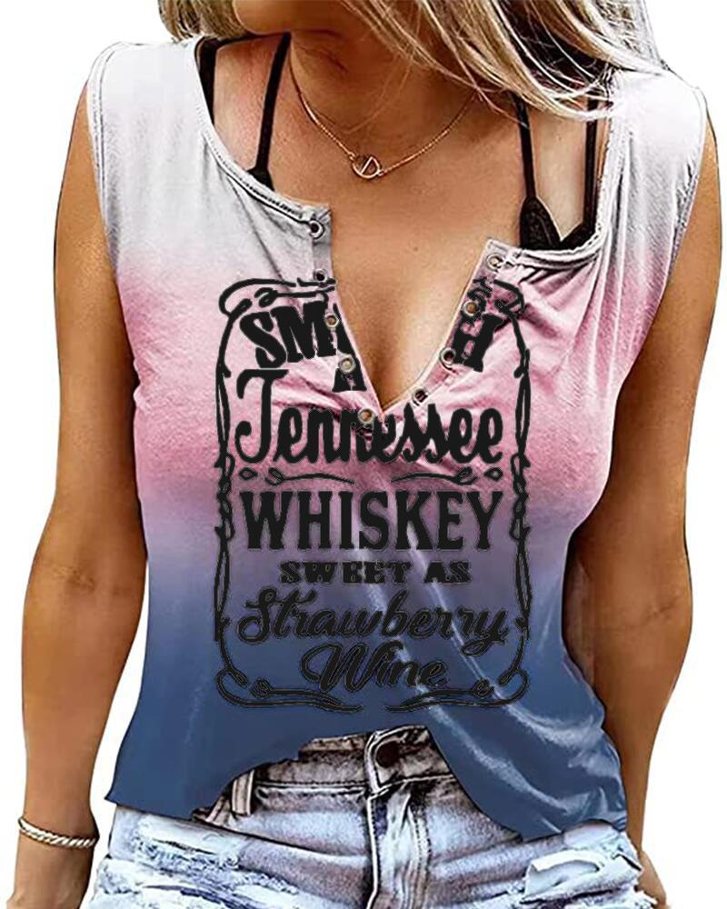 Smooth As Tennessee Whiskey Sweet As Strawberry Wine Print Eyelet Decor Casual Tank Top