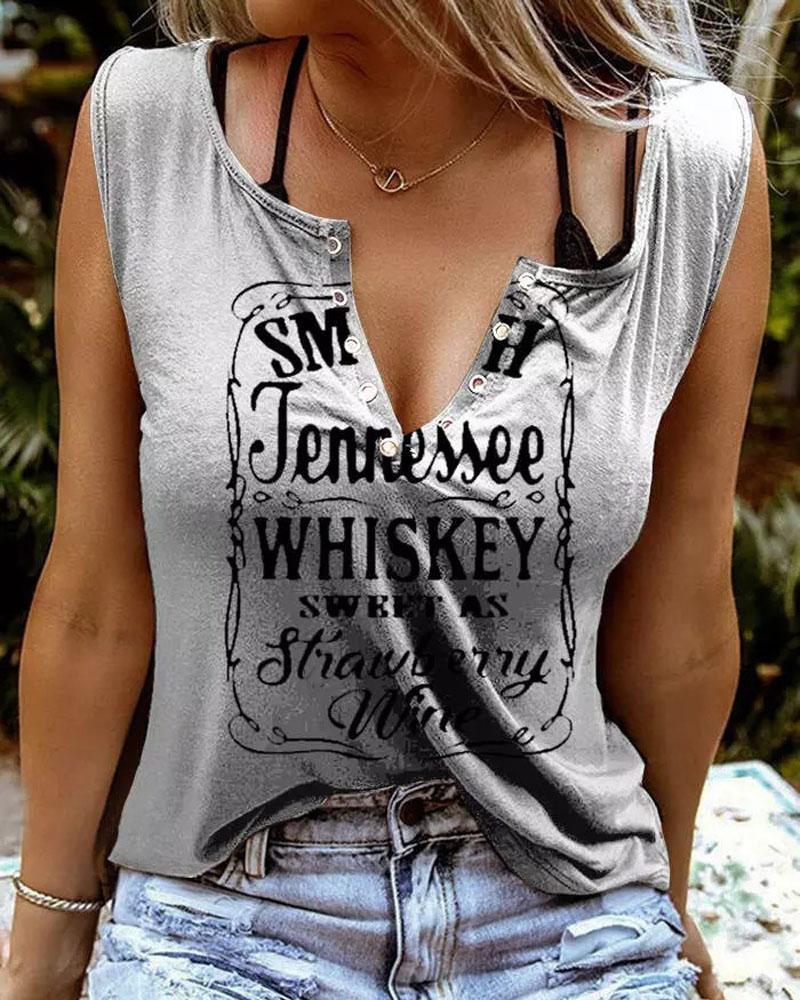Smooth As Tennessee Whiskey Sweet As Strawberry Wine Print Eyelet Decor Casual Tank Top