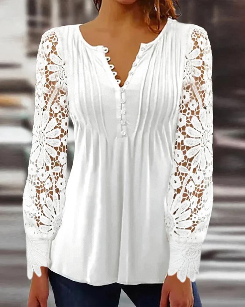 Style:Casual,Elegant Type:Blouses Material:97%Polyester,3%Spandex Neckline:Round Neck Sleeve Style:Long Sleeve Length:Regular Pattern Type:Plain Decoration:Button,Contrast Lace Fit Type:Regular Occasion:Daily,Work Package Include:1* Blouse Fabric Elasticity:Slight Stretch Sheer:No Care Instructions:Machine wash or professional dry clean
