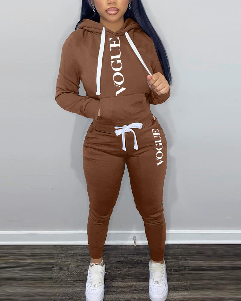 Letter Print Long Sleeve Casual Hoodie & Pants Set