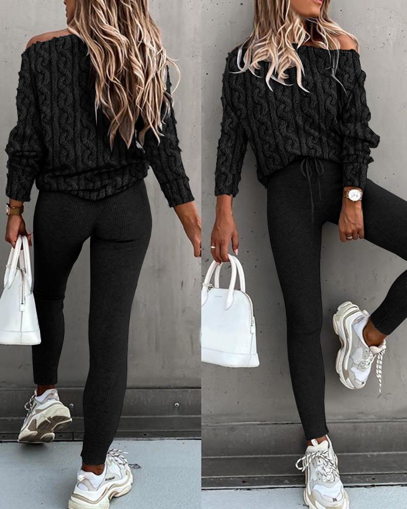 Braid Textured Fluffy Long Sleeve Top & Pants Set