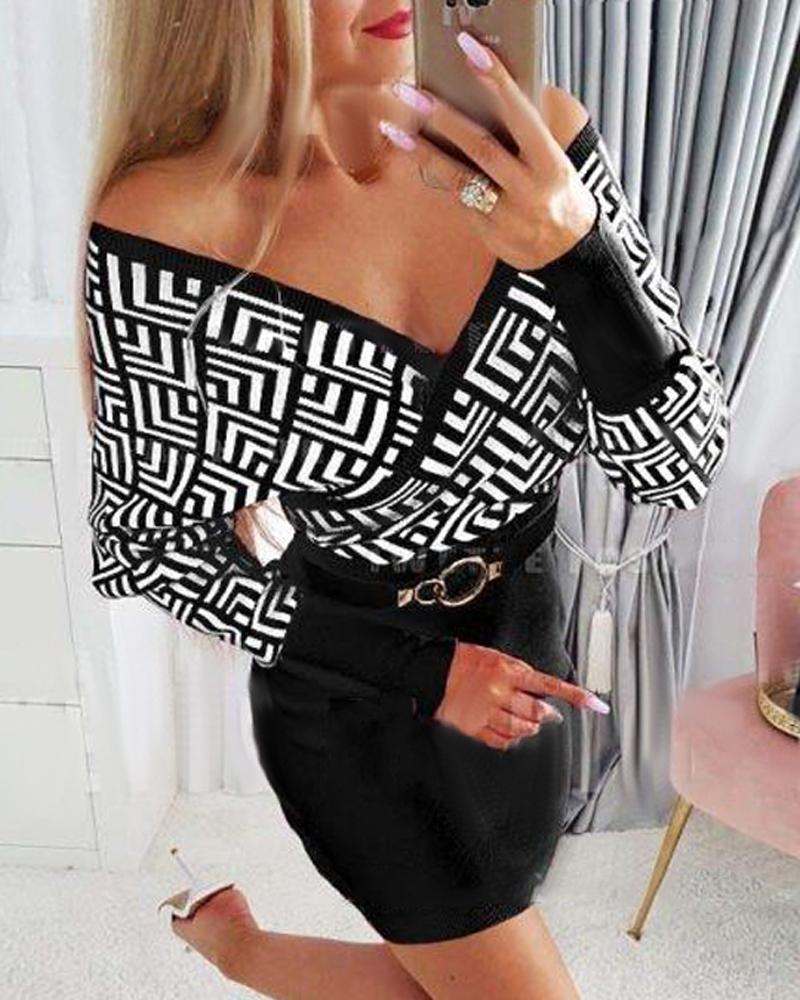 Geometric Print Long Sleeve Wrap Dress
