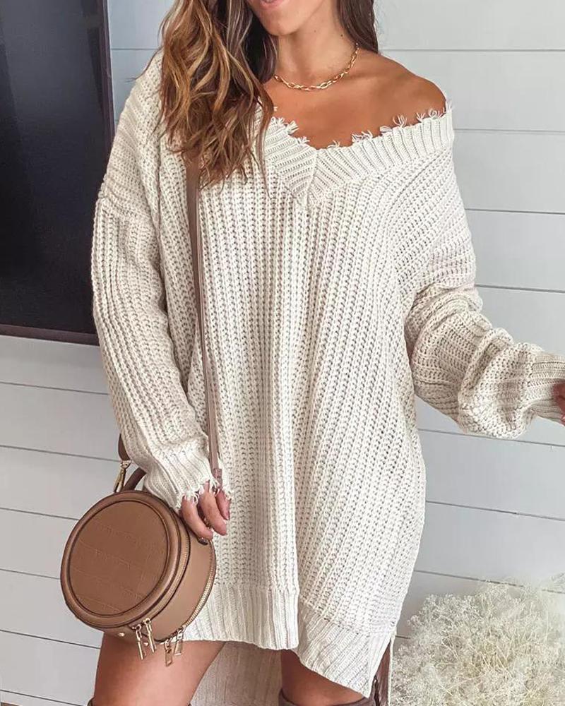 Long Sleeve Distressed Chunky Knit Sweater Dress
