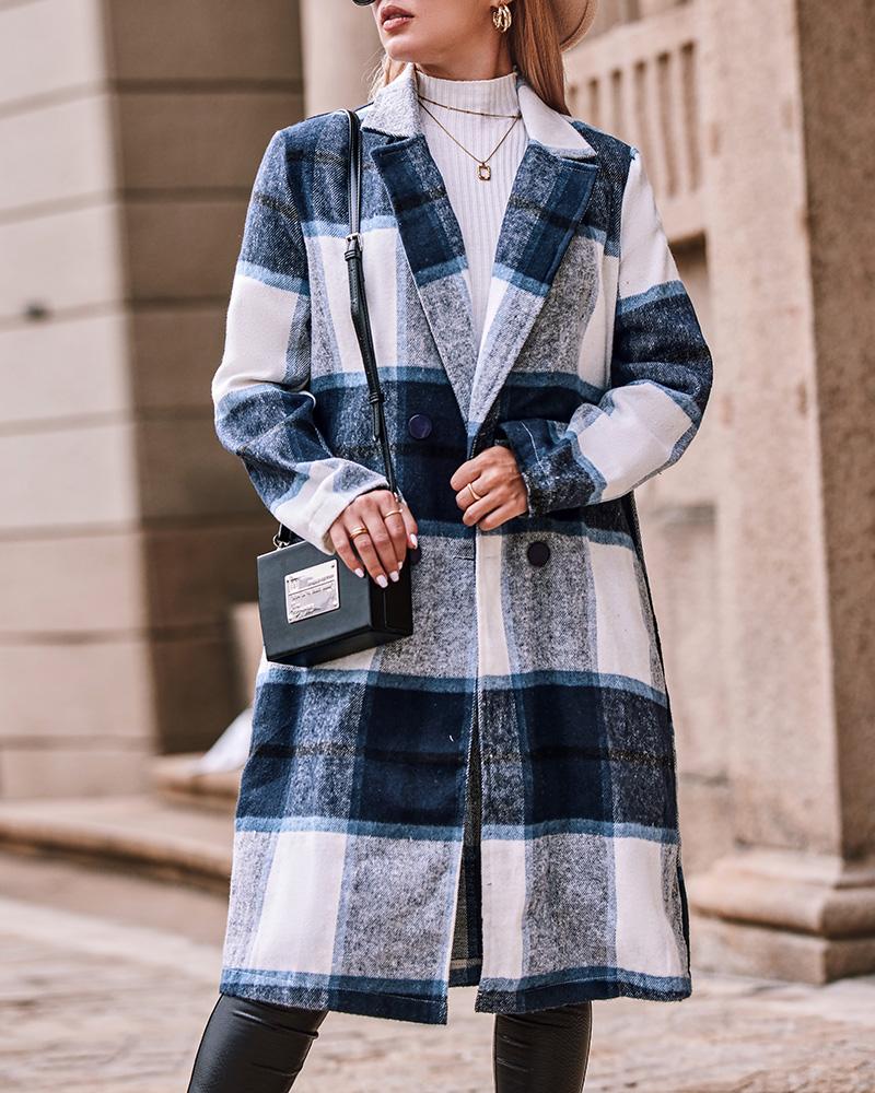 Style:Casual Type:Trench Coat Material:100%Polyester Neckline:Notched Collar Sleeve Style:Long Sleeve Length:Long Pattern Type:Plaid Fit Type:Regular Occasion:Daily Package Include:1*Trench Coat