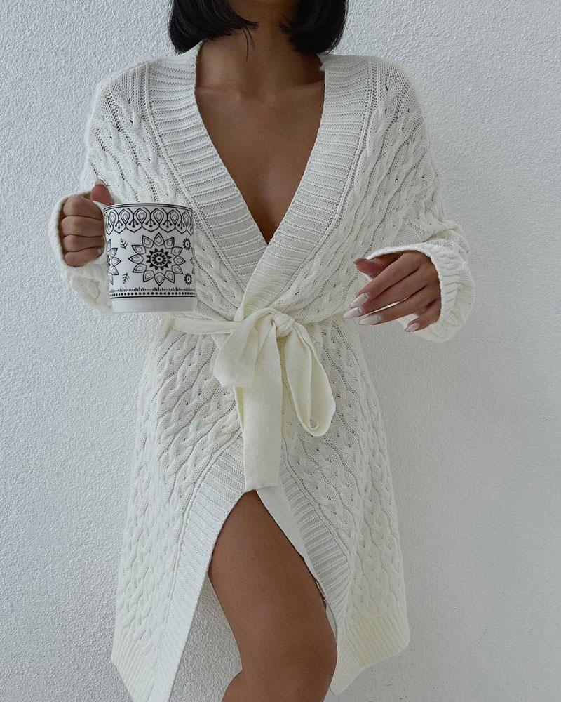 Style:Casual Type:Cardigan Material:97%Polyester,3%Spandex Neckline:Open Front Sleeve Style:Long Sleeve Length:Regular Pattern Type:Plain Fit Type:Regular With Belt:Yes Occasion:Daily Package Include:1*Cardigan (With Belt)