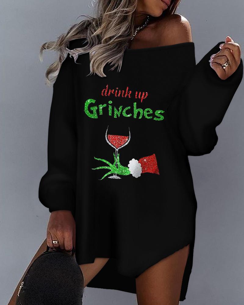 Style:Casual Type:Straight Material:97%Polyester,3%Spandex Neckline:Boat Neck Sleeve Style:Long Sleeve Length:Mini Pattern Type:Christmas Fit Type:Oversized Occasion:Christmas Package Include:1* Dress