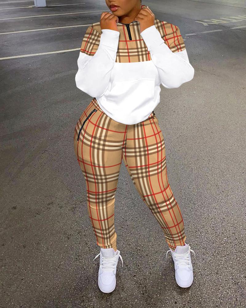 Style:Casual Type:Sweatpants Sets,Sweatshirt Sets Material:97%Polyester,3%Spandex Neckline:Turn-down Collar Sleeve Style:Long Sleeve Length:Long Pattern Type:Plaid Decoration:Pocket,Zipper Fit Type:Regular Occasion:Daily Package Include:1*Pants Set