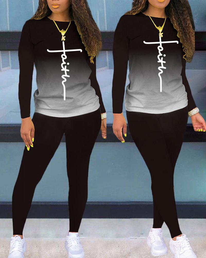 Faith Ombre Print Long Sleeve Top & Pants Set