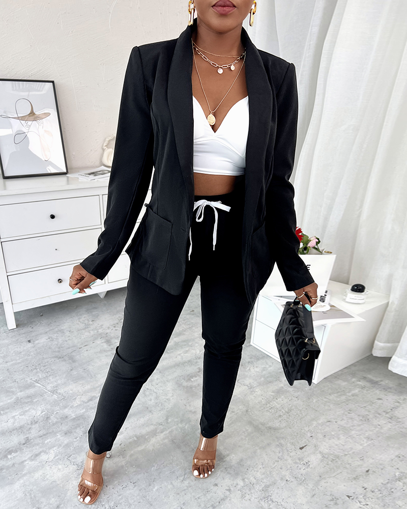 Lapel Neck Blazer Coat & Drawstring Pants Set
