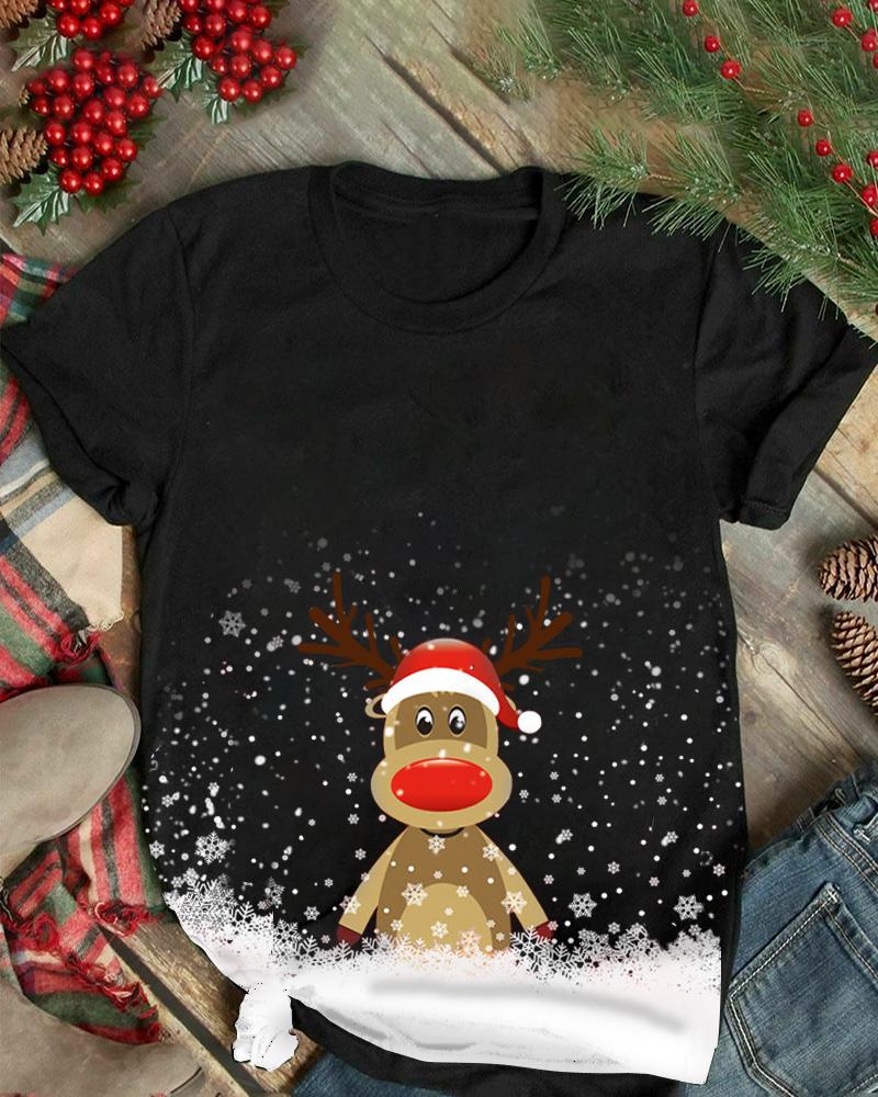 Christmas Snowflake Cartoon Elk Print Short Sleeve T-shirt