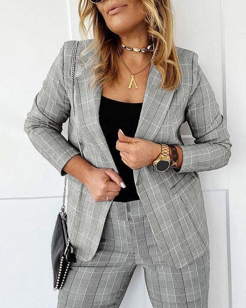 Style:Chic,Elegant Type:Blazer Material:97%Polyester,3%Spandex Neckline:Notched Collar Sleeve Style:Long Sleeve Length:Regular Pattern Type:Plaid Decoration:Button Fit Type:Regular Occasion:Daily,Work Package Include:1*Coat(Without Pants)