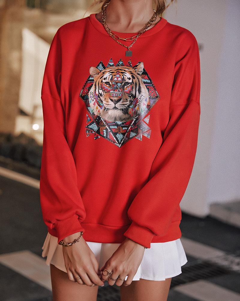 Style:Casual,Chic Type:Sweatshirt Material:97%Polyester,3%Spandex Neckline:O-neck Sleeve Style:Long Sleeve Length:Regular Pattern Type:Animal Fit Type:Regular Occasion:Daily Package Include:1*Sweatshirt