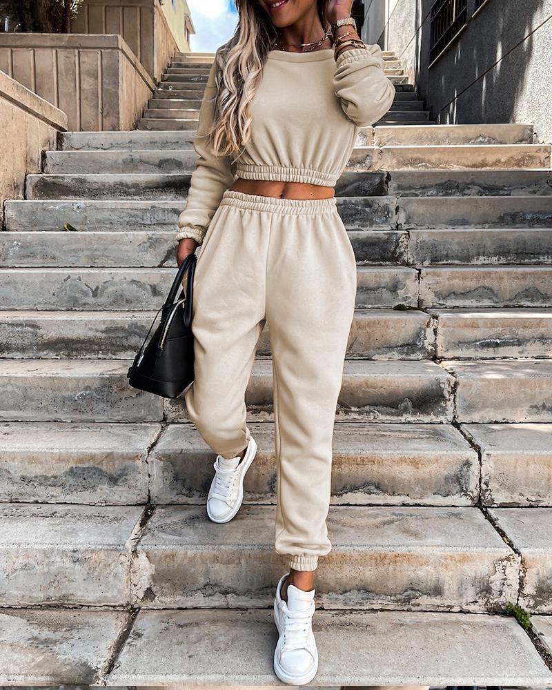 Style:Casual Type:Sweatpants Sets,Pants Sets Material:97%Polyester,3%Spandex Neckline:Round Neck Sleeve Style:Long Sleeve Length:Long Pattern Type:Plain Decoration:Pocket Fit Type:Regular Occasion:Daily Package Include:Pants Sets