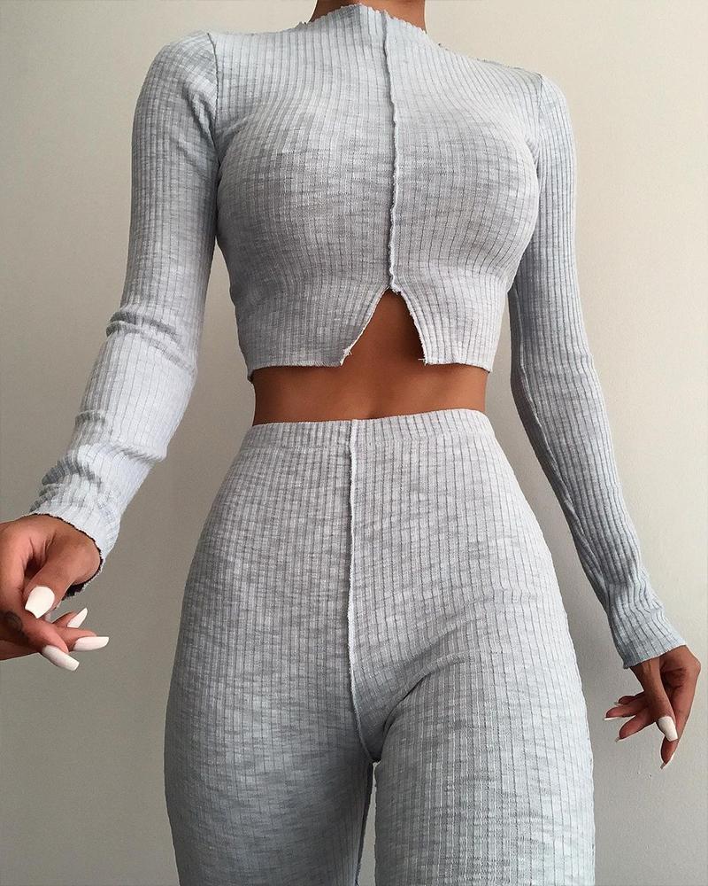 Style:Chic Type:Pants Sets Material:97%Polyester,3%Spandex Neckline:O-neck Sleeve Style:Long Sleeve Length:Long Pattern Type:Plain Fit Type:Skinny Occasion:Daily Package Include:Pants Sets