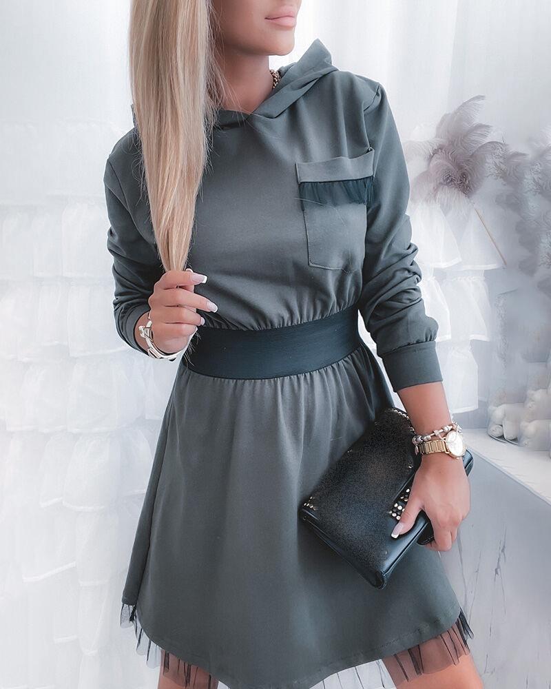 Style:Casual Type:A Line Material:97%Polyester,3%Spandex Neckline:Hooded Sleeve Style:Long Sleeve Length:Mini Pattern Type:Plain Fit Type:Regular Occasion:Daily Package Include:1* Dress