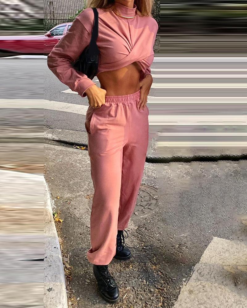 Twisted Crop Top & Pocket Design Pants Set