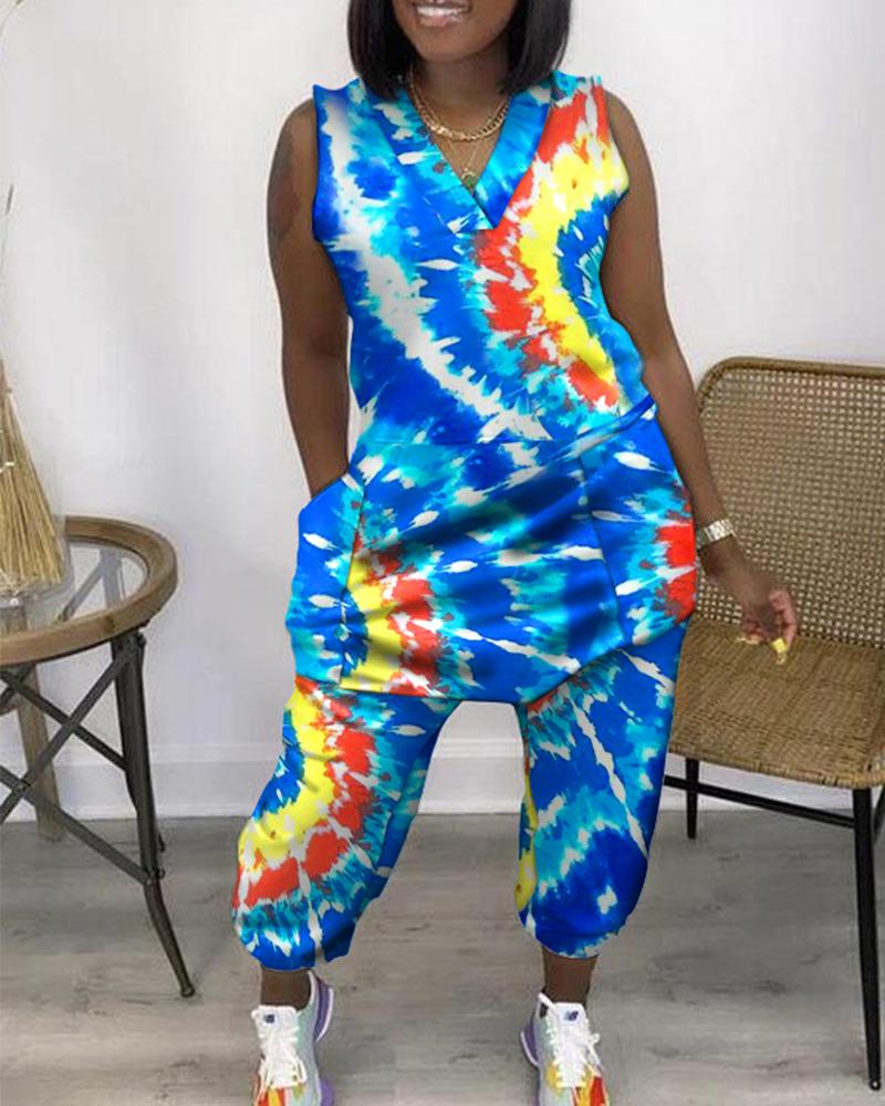 Style:Casual,Chic Type:Jumpsuit Material:97%Polyester,3%Spandex Neckline:V-Neck Sleeve Style:Sleeveless Length:Long Pattern Type:Tie Dye Decoration:Pocket Fit Type:Regular Occasion:Daily Package Include:1*Jumpsuit