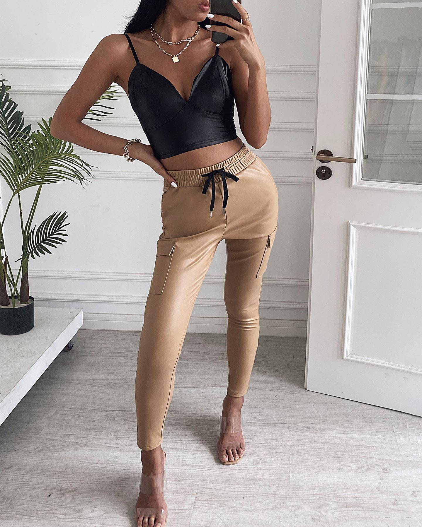 Style:Casual Type:,Skinny Pants,High Waist Material:97%Polyester,3%Spandex Length:Long Pattern Type:Plain Decoration:Pocket,Drawstring Fit Type:Skinny Occasion:Daily Package Include:1*Pants